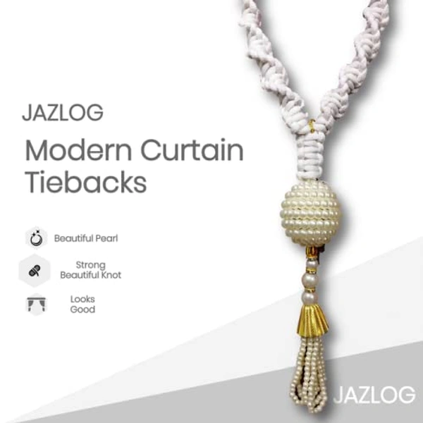 JAZLOG 2Pcs Curtain Tiebacks Rope, Pearl Desing Curtain Tie-Backs Decorative Holdbacks Rope for Home Decoration Curtain Holders-Silver