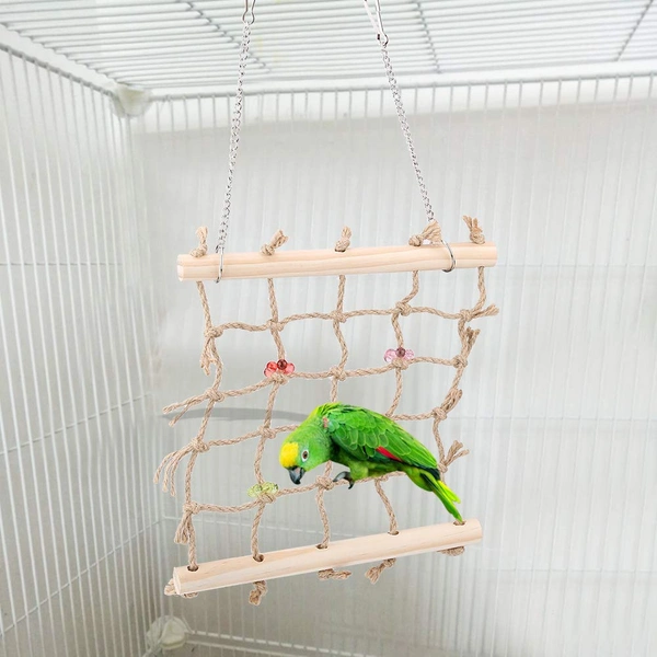 ?Safe & Durable Material?Made of superior wood, hemp rope and metal hook, all finishes are non-toxic, safe and Eco-friendly, exquisite workmanship, all parts are rounded smooth, no burr, avoid hurting your pet parrot, tough and durable to use.