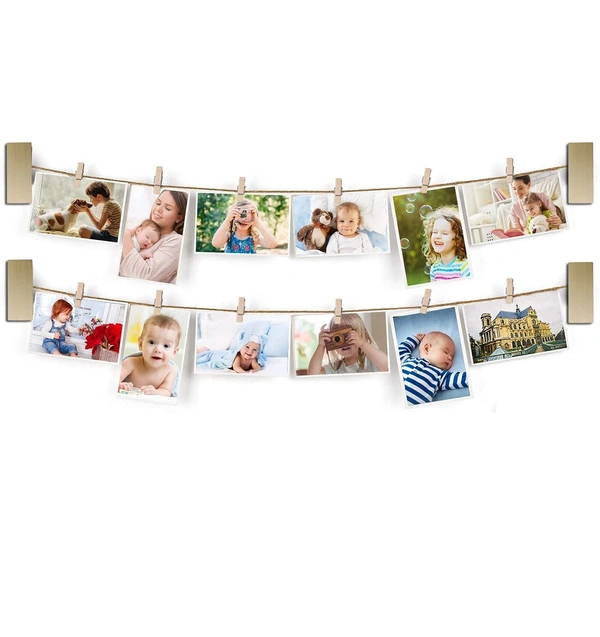 ?Easy to Install & Versatile?Not any assemble, just drill a hook or attached screw, pin picture frames to the wall and hang it on. Photos your loved are to be clamped to the wooden clips. This product can be hung to the study, Bedroom, Living room, Corridor or passage way