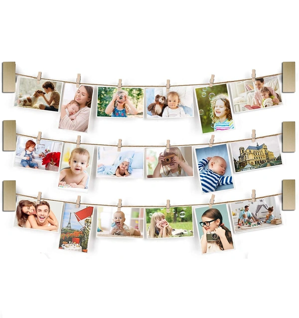 ?Easy to Install & Versatile?Not any assemble, just drill a hook or attached screw, pin picture frames to the wall and hang it on. Photos your loved are to be clamped to the wooden clips. This product can be hung to the study, Bedroom, Living room, Corridor or passage way