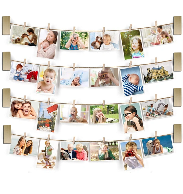 ?Easy to Install & Versatile?Not any assemble, just drill a hook or attached screw, pin picture frames to the wall and hang it on. Photos your loved are to be clamped to the wooden clips. This product can be hung to the study, Bedroom, Living room, Corridor or passage way