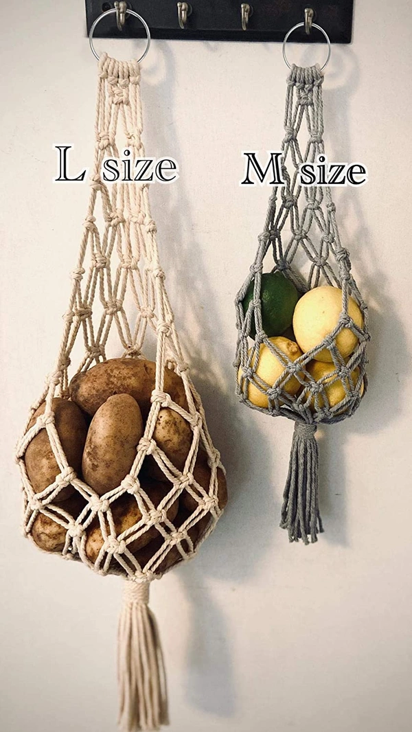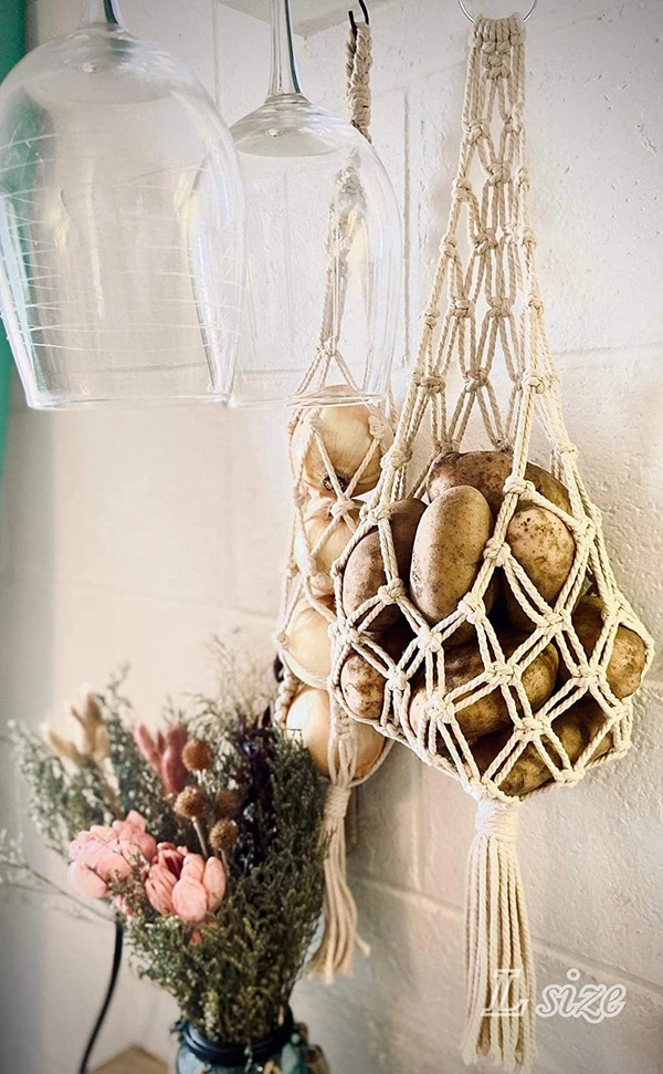 STURDY AND DURABLE BOHO BASKET FOR STORAGE. This wall hanging organizer can hold quite a lot of fresh produce. It's perfect for potato, onion, garlic, avocado, any fruit or veggie you'd like to store in open container. It provides good air circulation for onions and potatoes to keep them fresh and avoid rotting or sprouting in a few weeks.