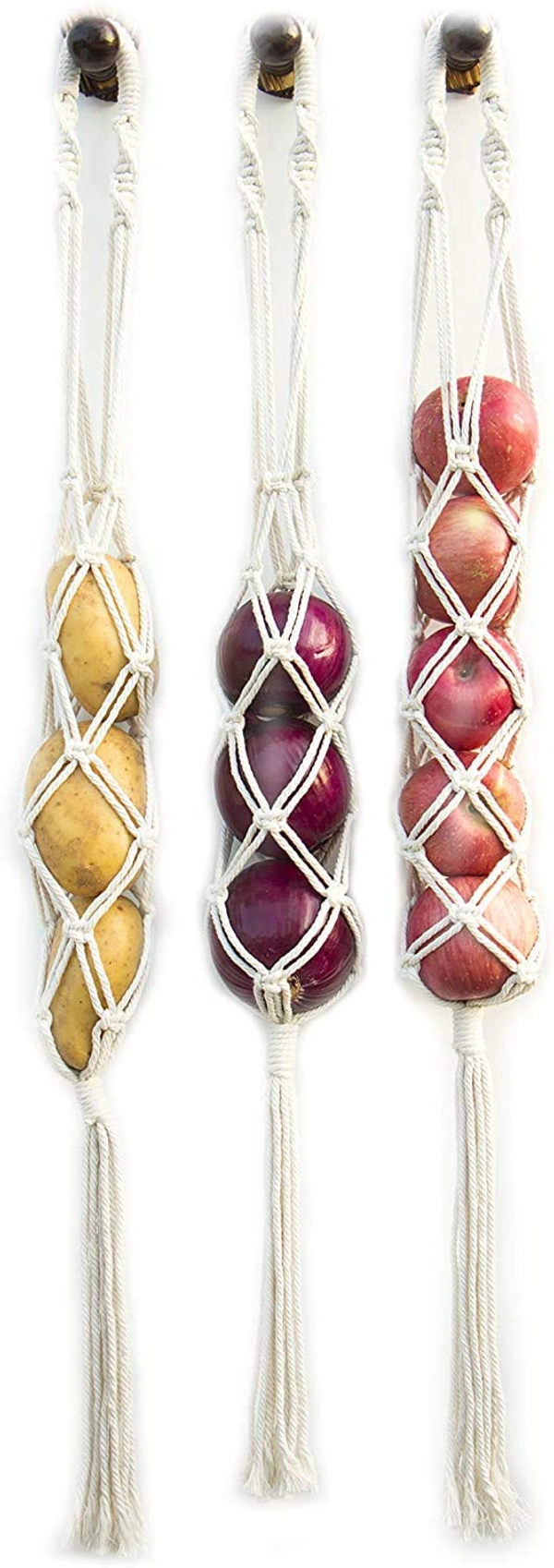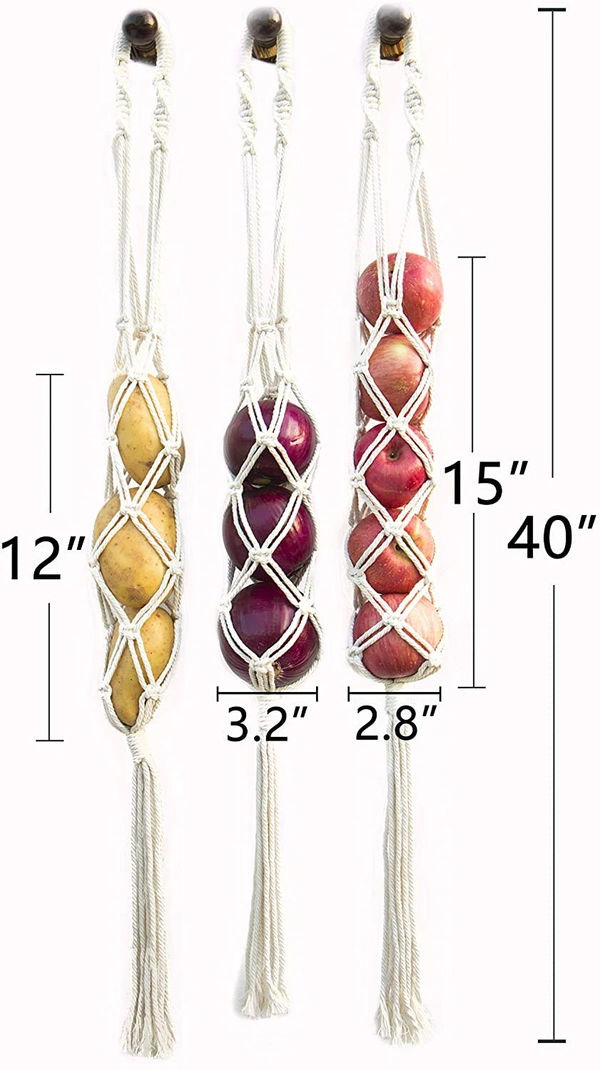 STURDY AND DURABLE BOHO BASKET FOR STORAGE. This wall hanging organizer can hold quite a lot of fresh produce. It's perfect for potato, onion, garlic, avocado, any fruit or veggie you'd like to store in open container. It provides good air circulation for onions and potatoes to keep them fresh and avoid rotting or sprouting in a few weeks.