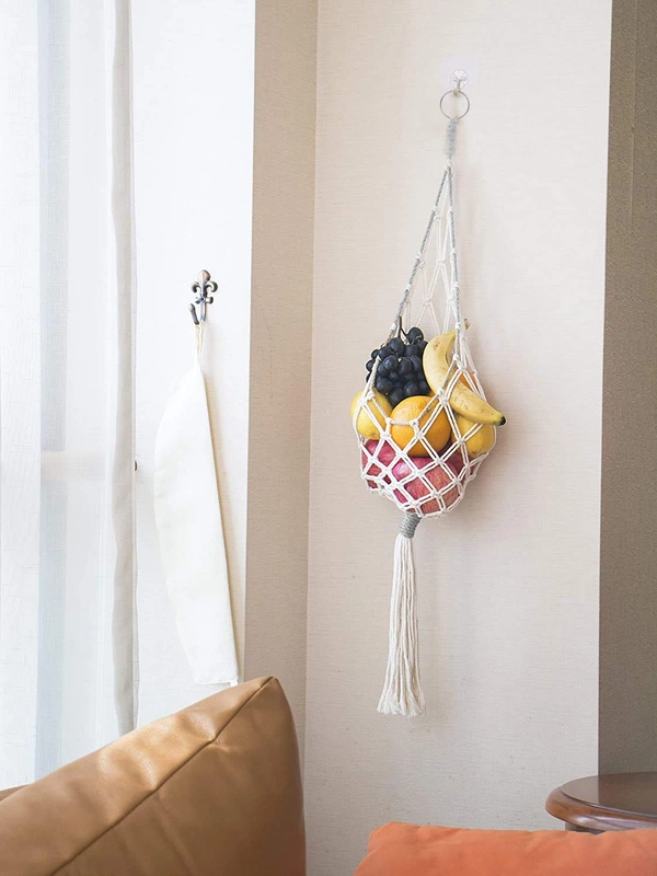 JAZLOG Hanging Fruit Basket is made of 100% natural cotton rope. It's meticulously handcrafted as an artwork to give your home an incomparable touch of cozy and neutral texture. It will be a FANTASTIC GIFT for your family or friends, and also great for housewarming.
