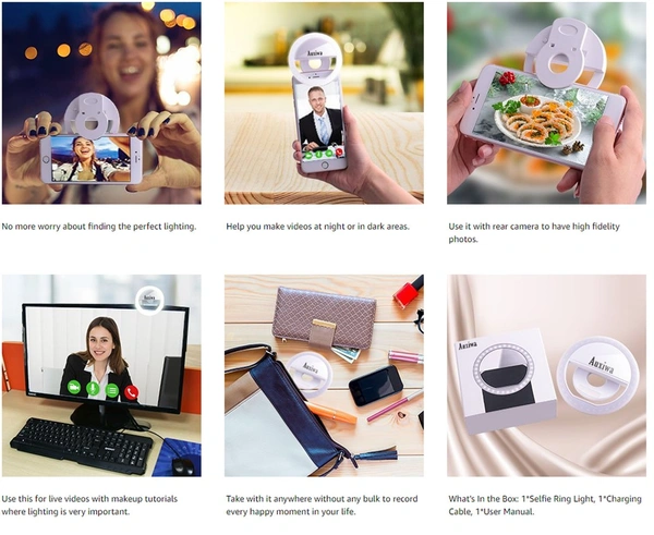 Step Up Your Selfie Game: Photos are all about lighting! Using the flash that comes with cell phones is a big big no no. This is why you need this selfie ring light! Just clip it on your phone and you are on your way.
