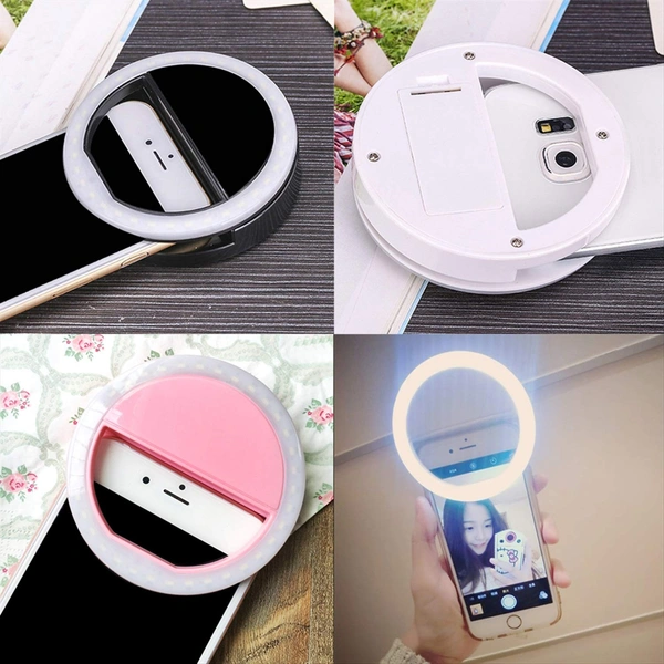 MacNgrid Clip on Round Selfie Ring Light Rechargeable Battery with 36 LED for SmartPhone (Random Colour)
