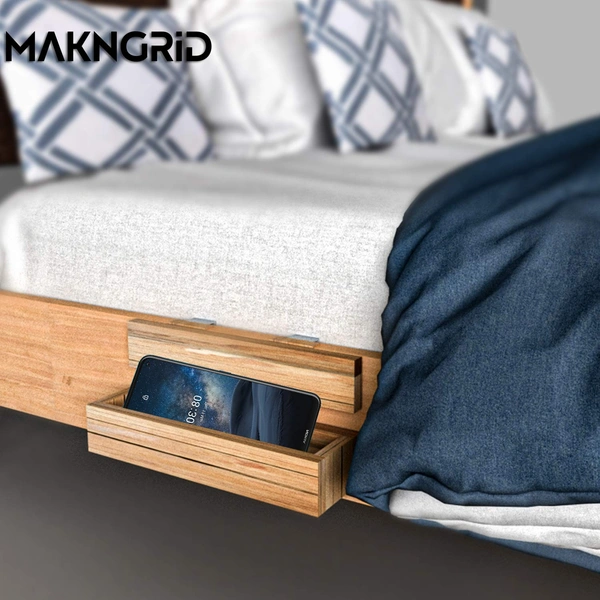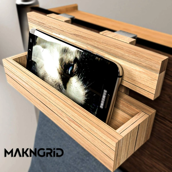 MAKNGRID Wooden Bedside Mini Cute Phone Stand Shelf for Bed,Table, Office, Home College Dorm Room Clip On Nightstand for Students Bedside Phone Holder Stand Mount (Pack of 01)