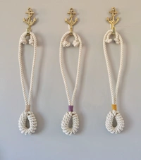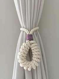 Set of 2 - Macrame Curtain Tieback, Marine, Nautica, Curtain Holder Holdback, Modern Window Treatment, Cotton Curtain Décor Off White (Pack of 01) Yellow
